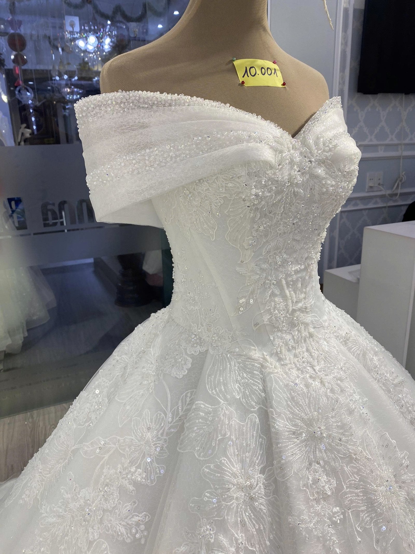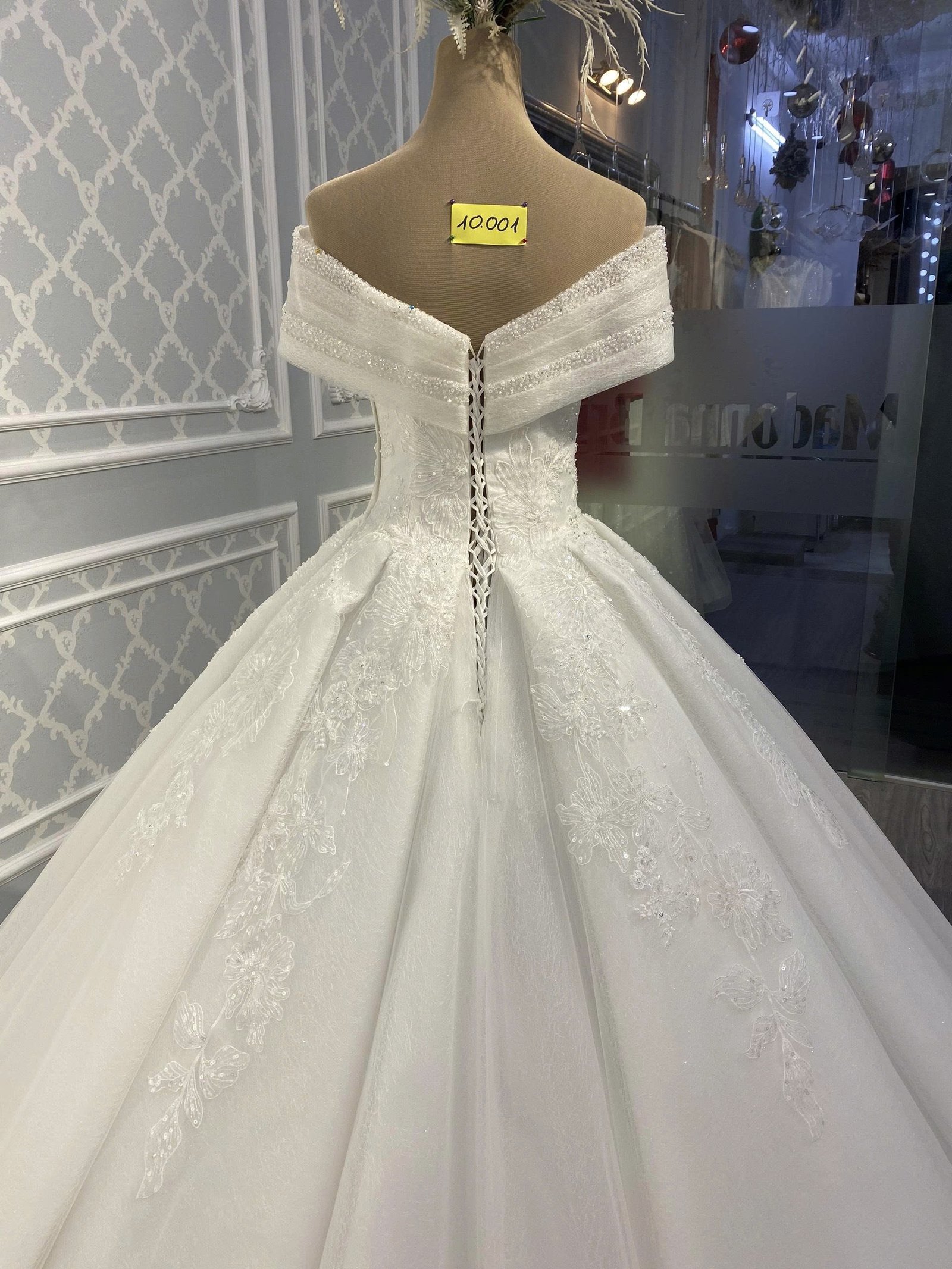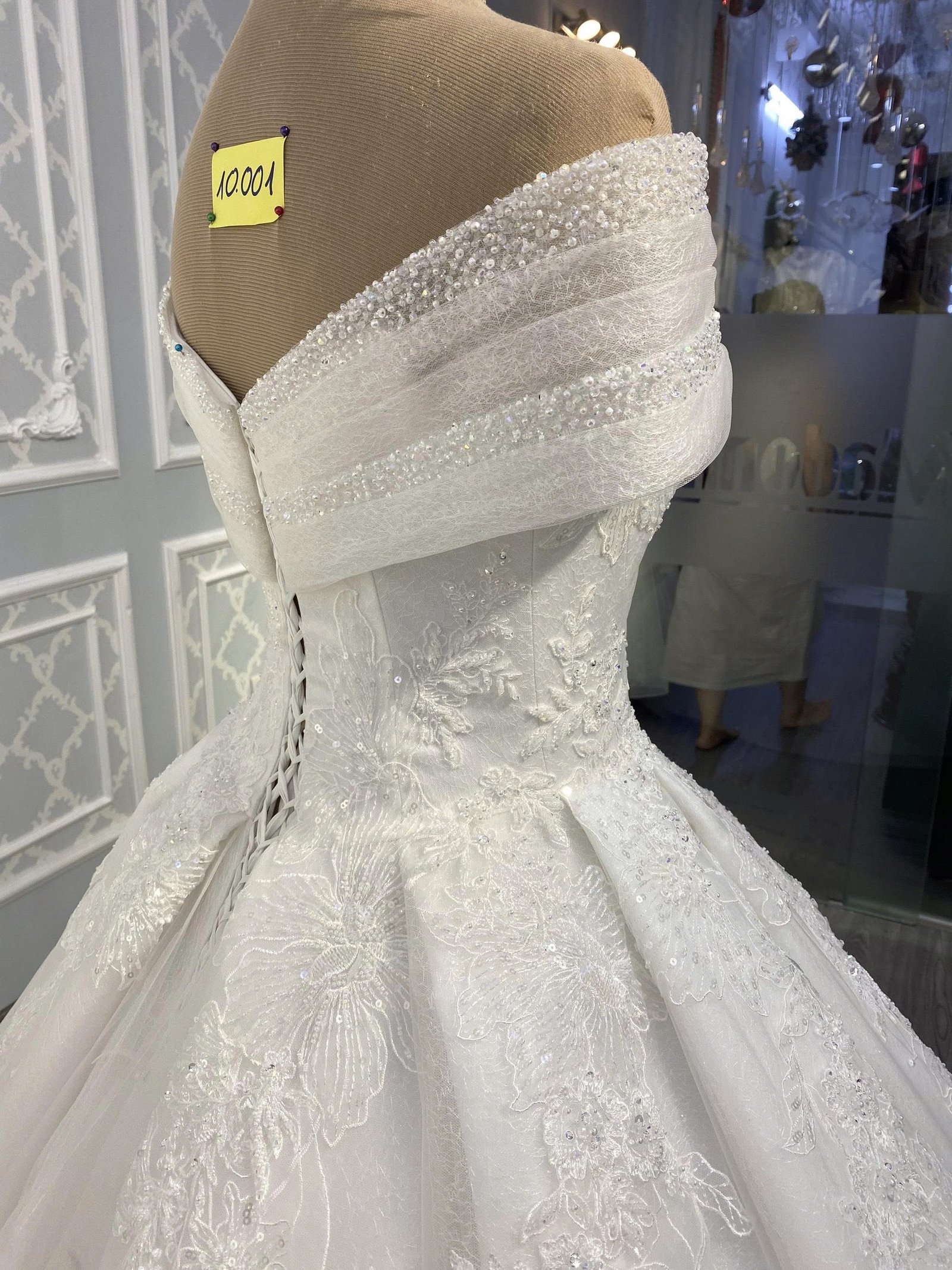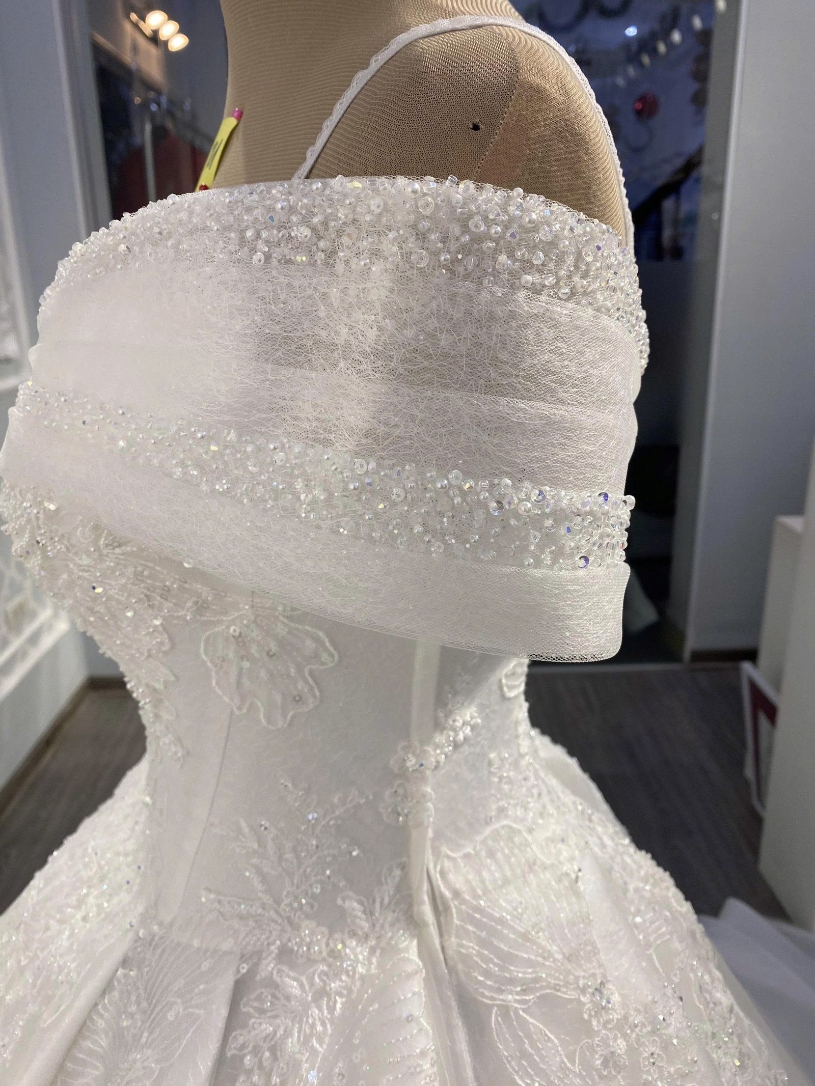 A-line wedding dress, made of lace, mesh and sparkling beading. Can be designed according to measurements or available sizes.