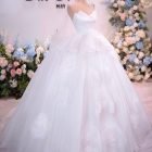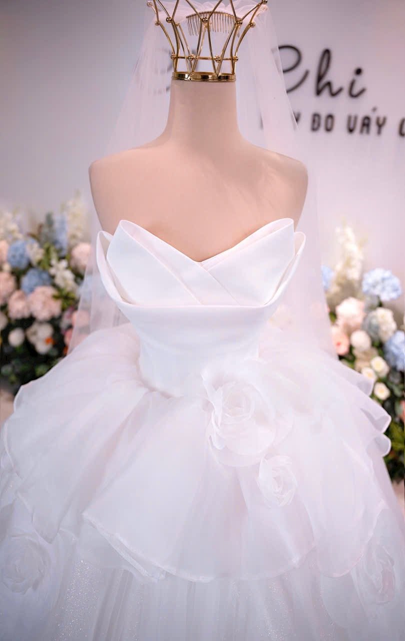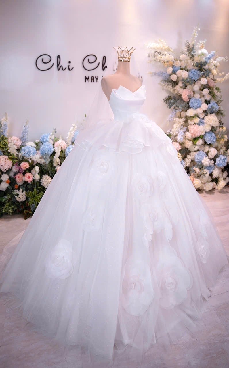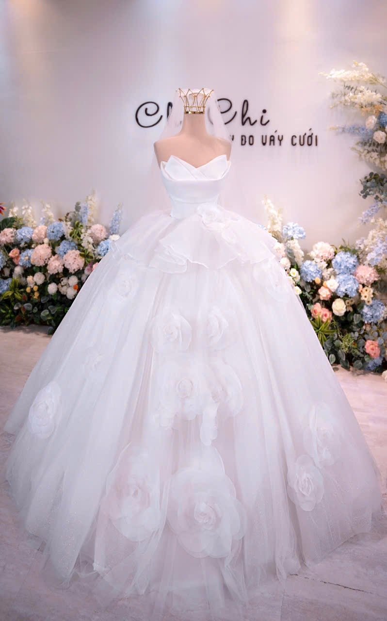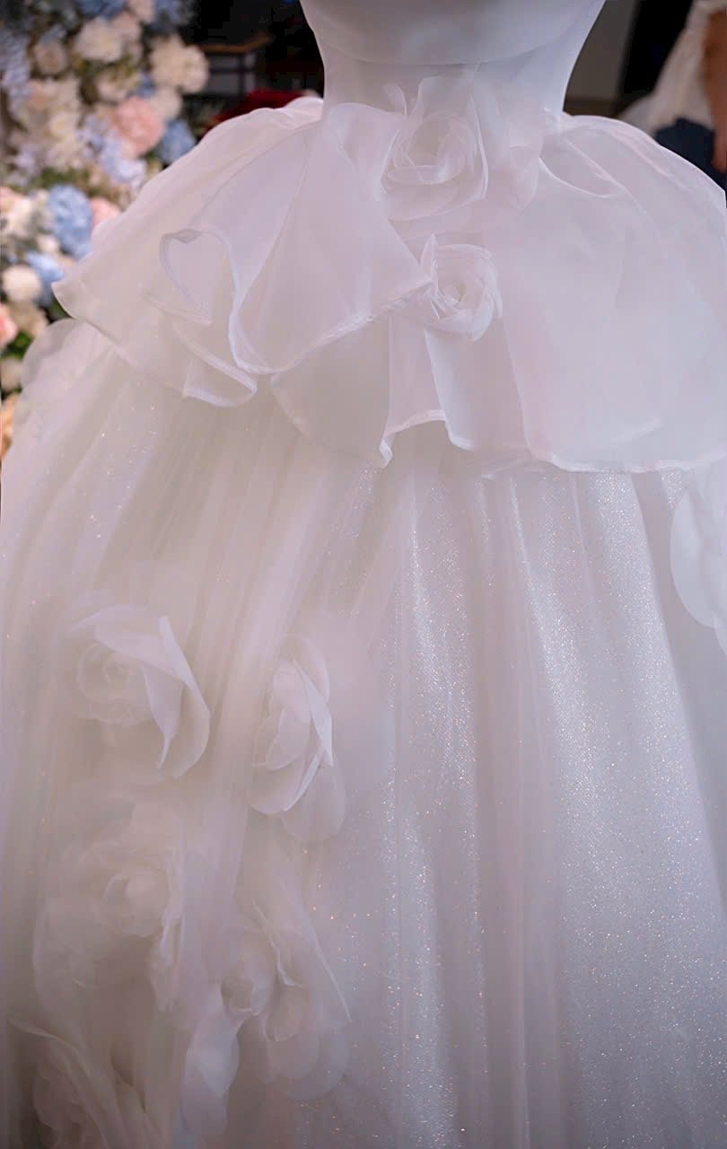 Color: Ivory Veil: With veil Built-in bra: Built-in bra Dress fastening: Lace up Neckline: Off – shoulder Silhouette: Ballgown Skirt Length: Floor-length Sleeve: LONG sleeves Brand: Chi Chi Paris Collection
