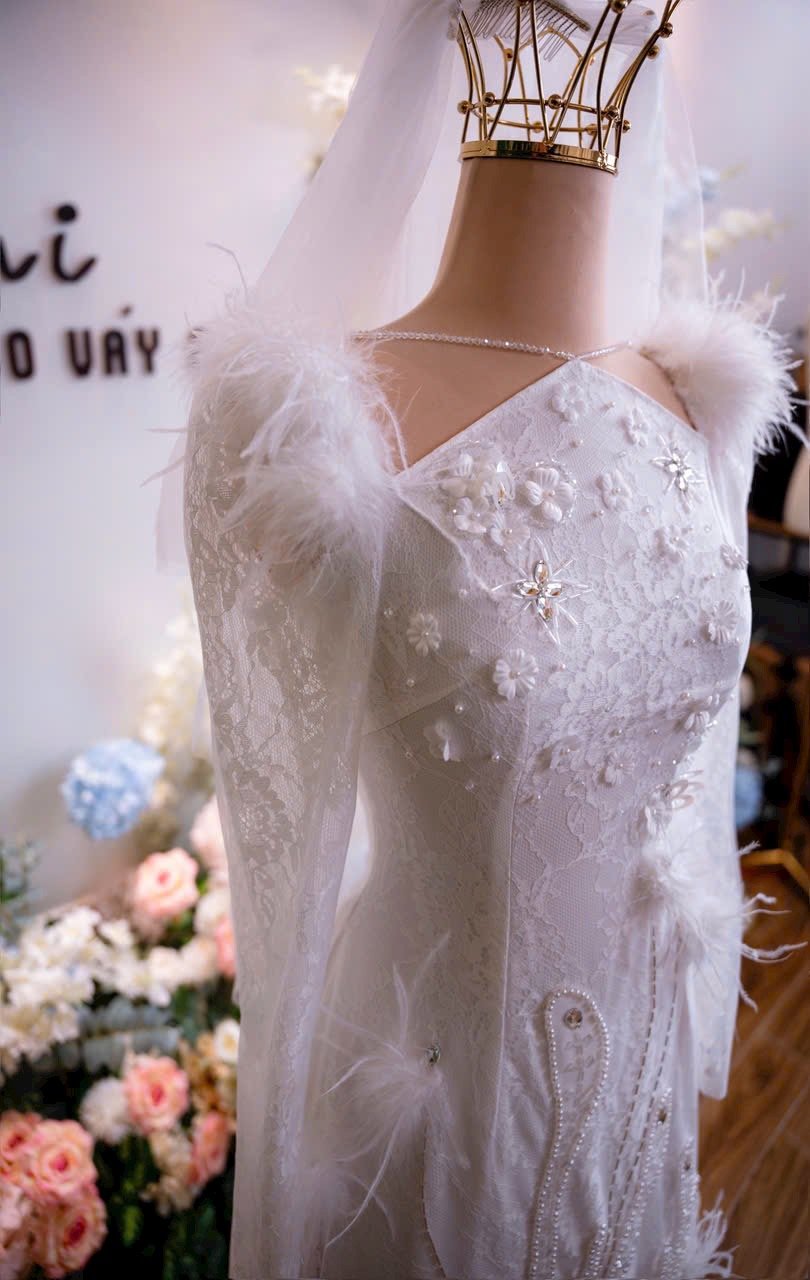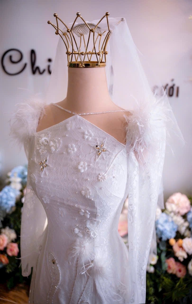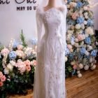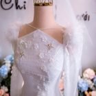 Color: Ivory white Veil: With veil Built-in bra: Built-in bra Dress fastening: Lace up Neckline: Off – shoulder Silhouette: trumpet Skirt Length: Floor-length Sleeve: NO Brand: Chi Chi Paris Collection