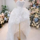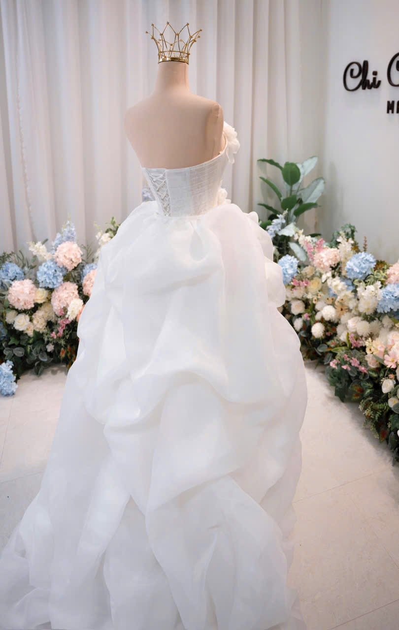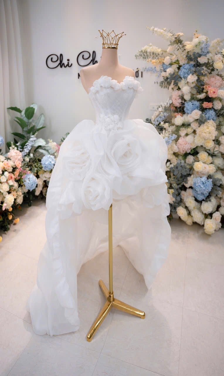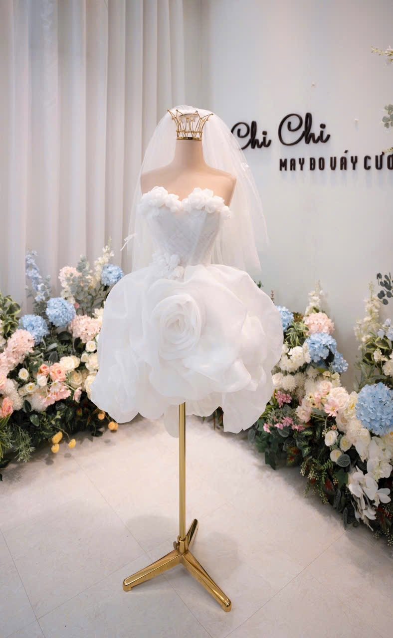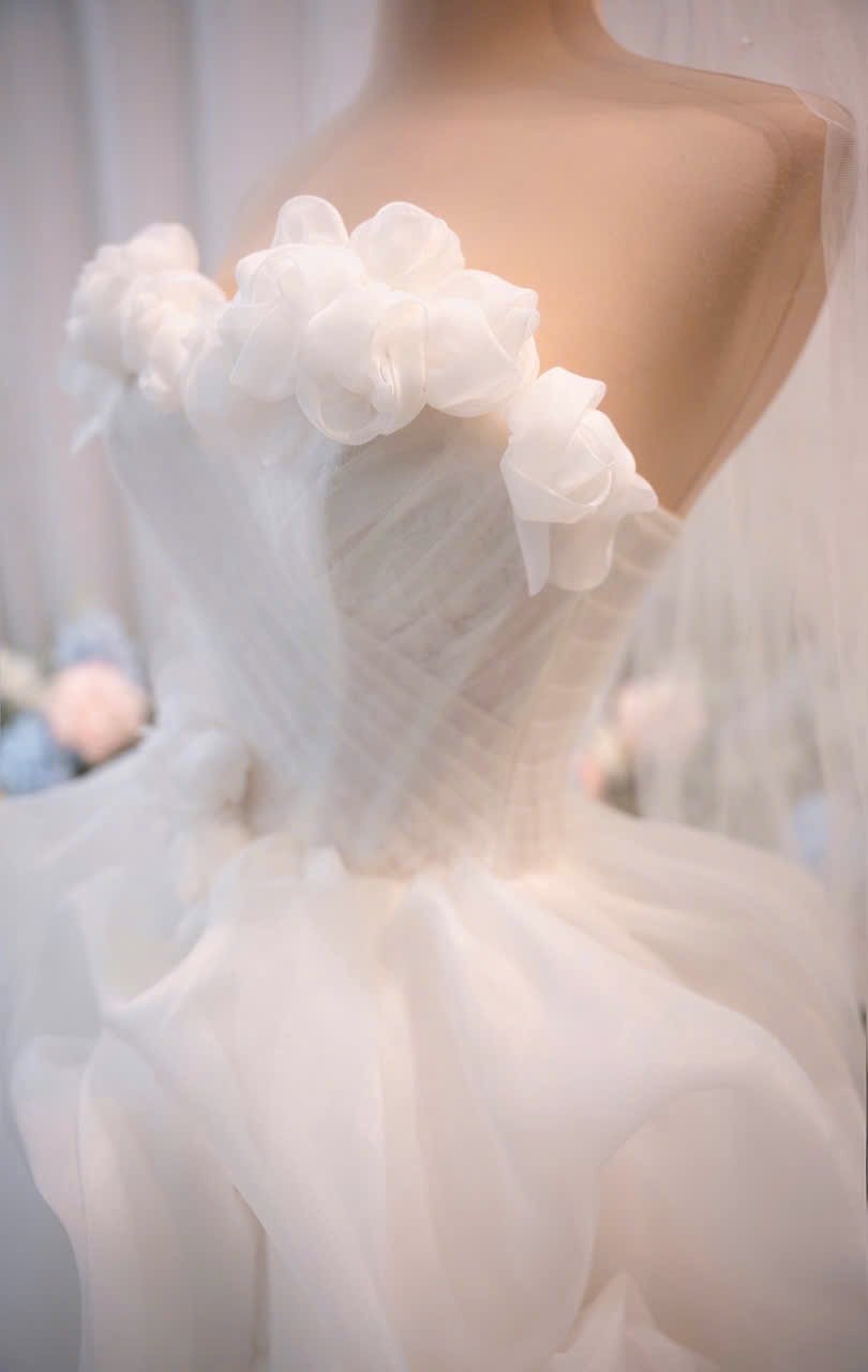 Color: White Ivory Veil: With veil Built-in bra: Built-in bra Dress fastening: Lace up Neckline: Off – shoulder Silhouette: trumpet Skirt Length: Floor-length Sleeve: NO Brand: Chi Chi Paris Collection
