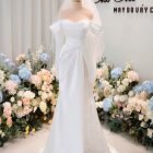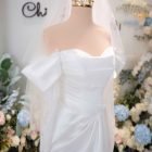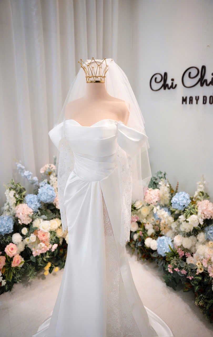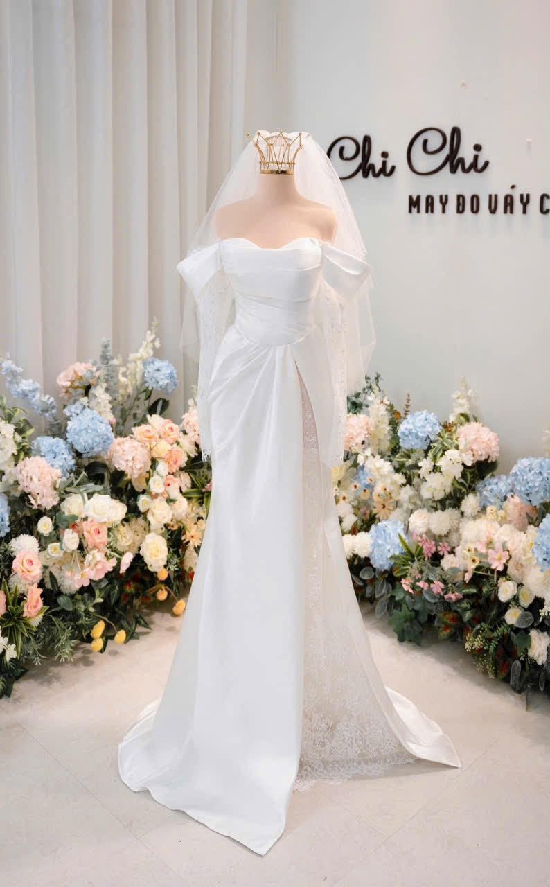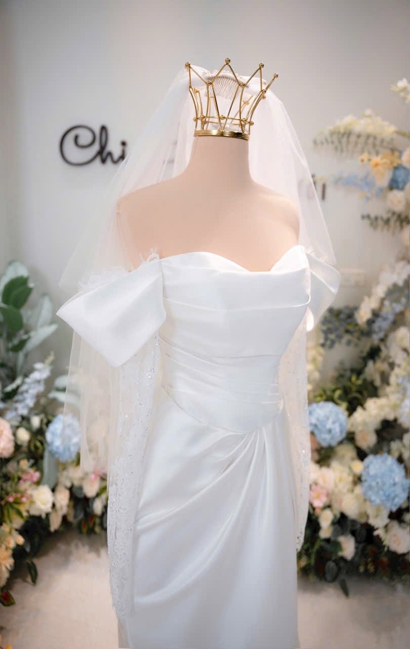 Veil: With veil Built-in bra: Built-in bra Dress fastening: Lace up Neckline: Off – shoulder Silhouette: trumpet Skirt Length: Floor-length Sleeve: NO Brand: Chi Chi Paris Collection