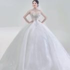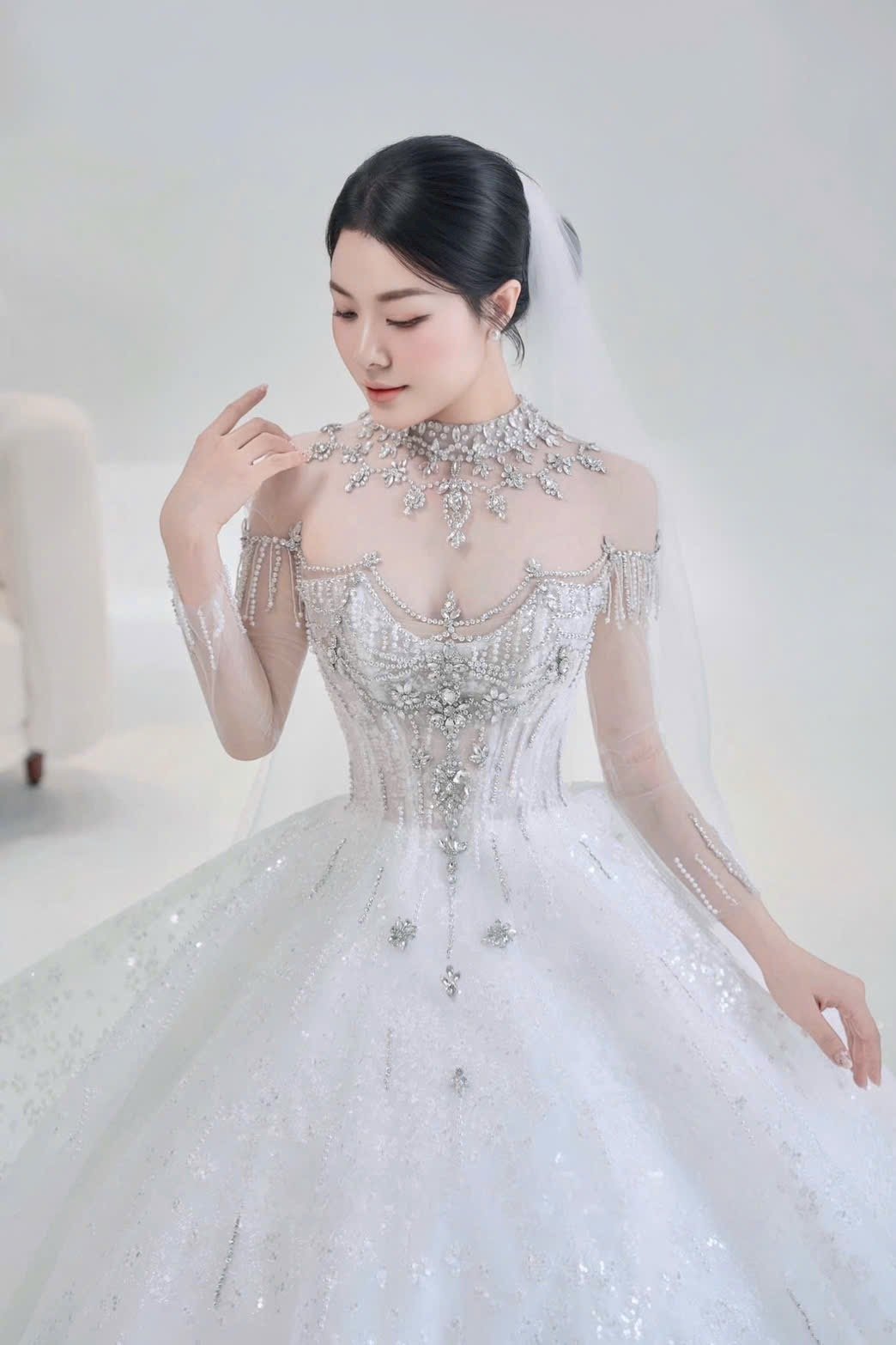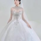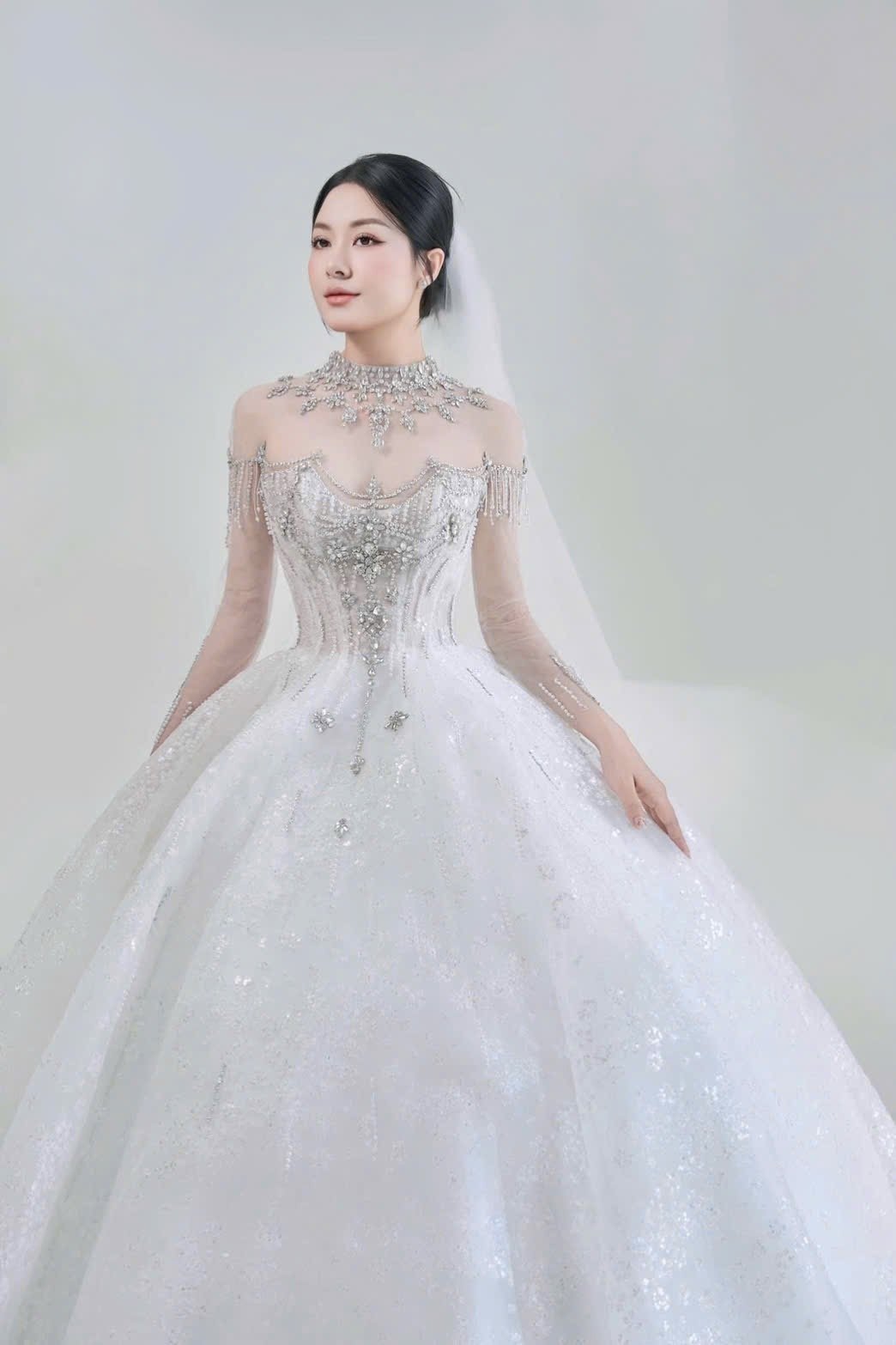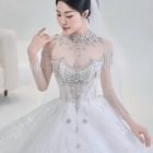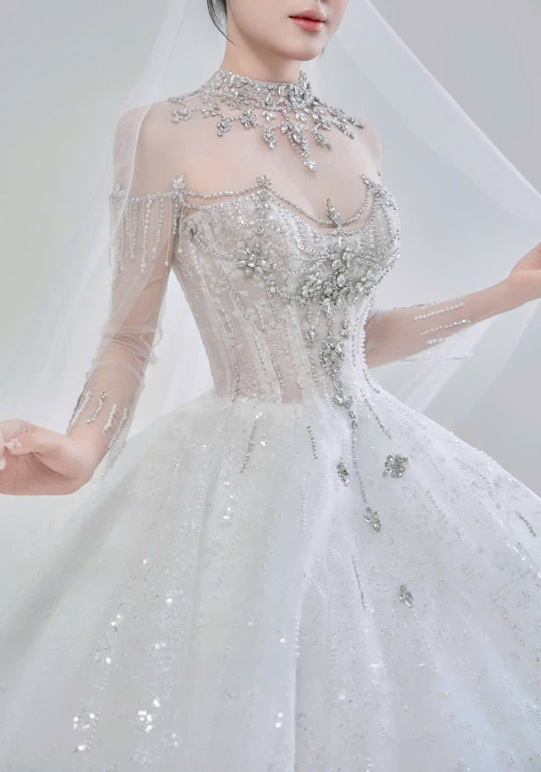 Color: Ivory/Nude Veil: With veil Built-in bra: Built-in bra Dress fastening: Lace up Neckline: Spaghetti strap Silhouette: Ballgown Skirt Length: Floor-length Sleeve: Long Off – shoulder Brand: Diana New York Collection