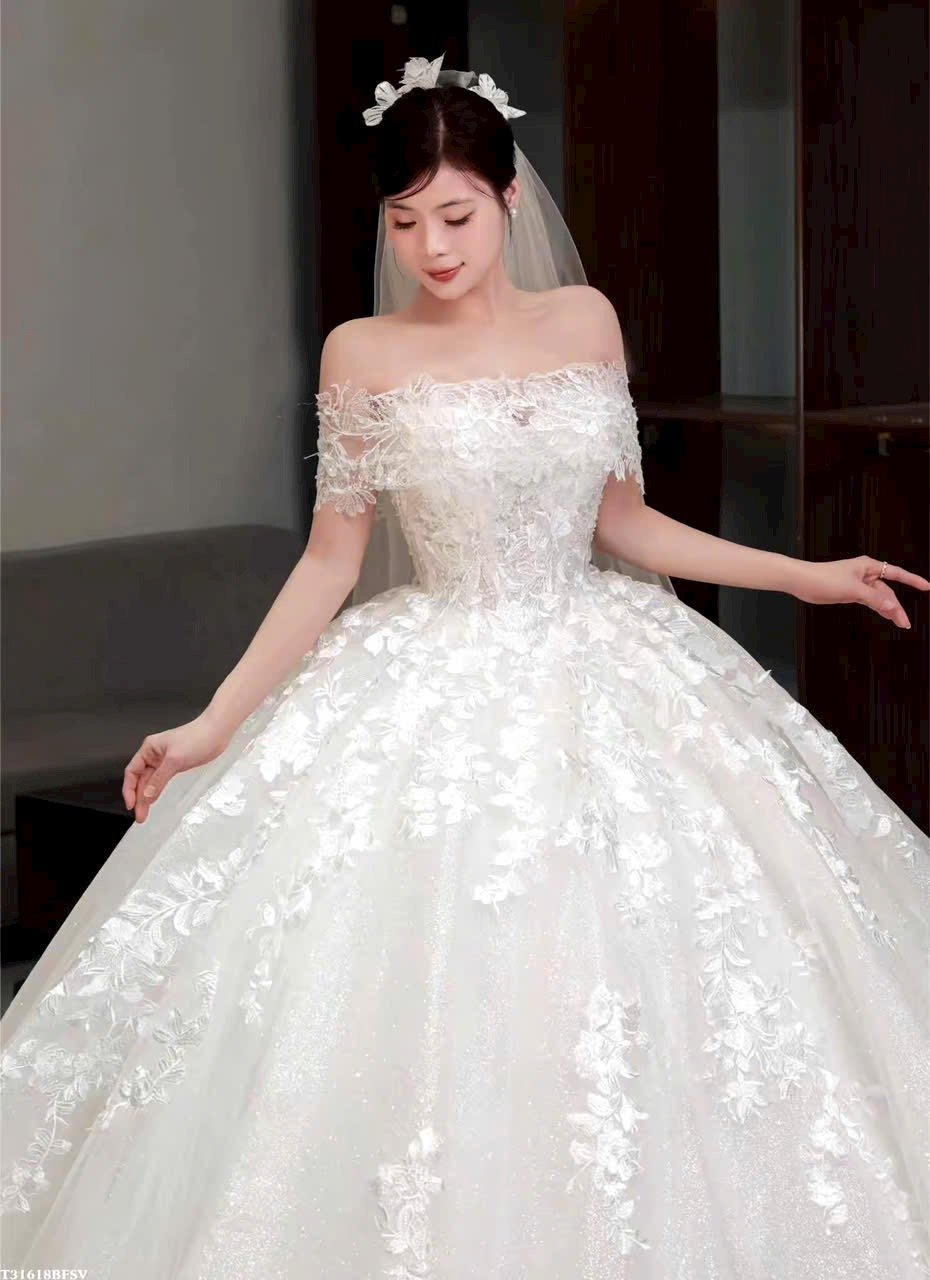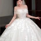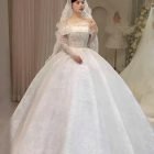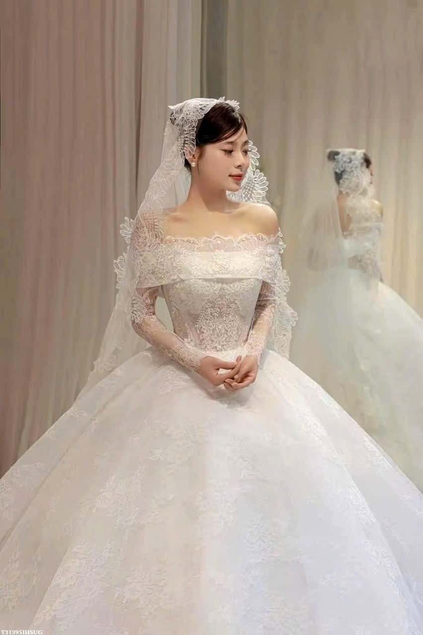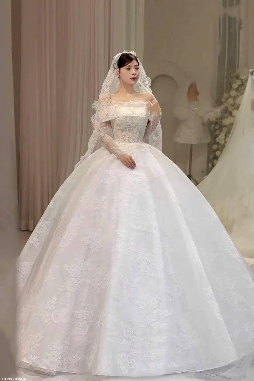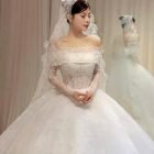 Veil: With veil Built-in bra: Built-in bra Dress fastening: Lace up Neckline: Off – shoulder Silhouette: Ballgown Skirt Length: Floor-length Sleeve: Long Off – shoulder Brand: Diana New York Collection