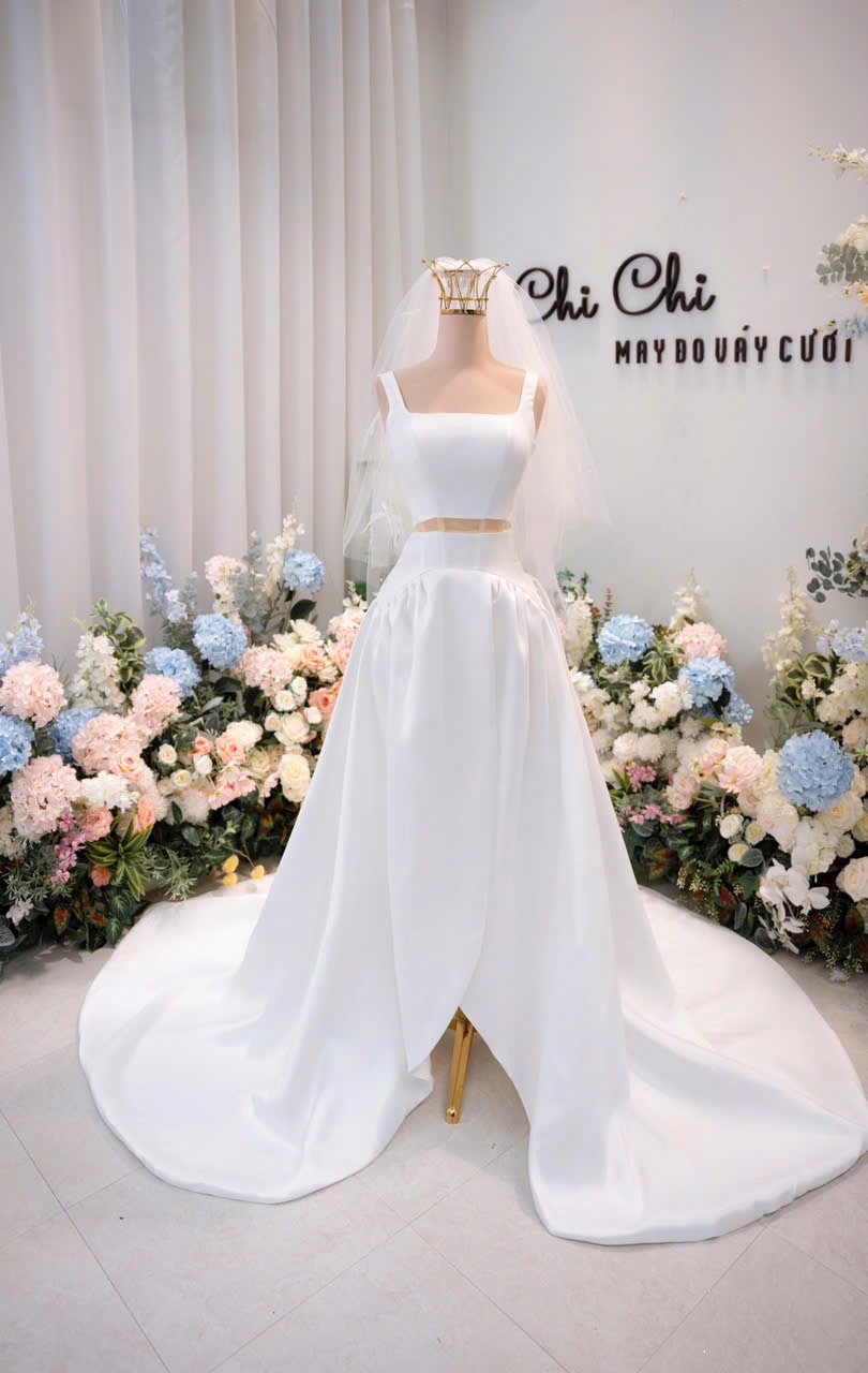 Odette Whisper stands out with a regal high neckline, full-length sleeves, and a cathedral-length train. Perfect for brides seeking elegance and drama.