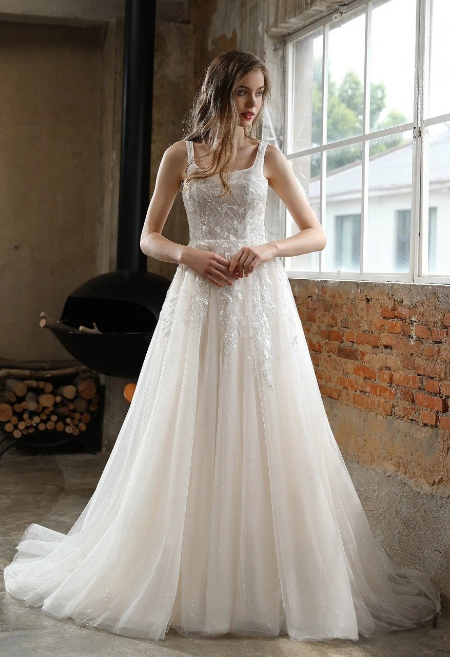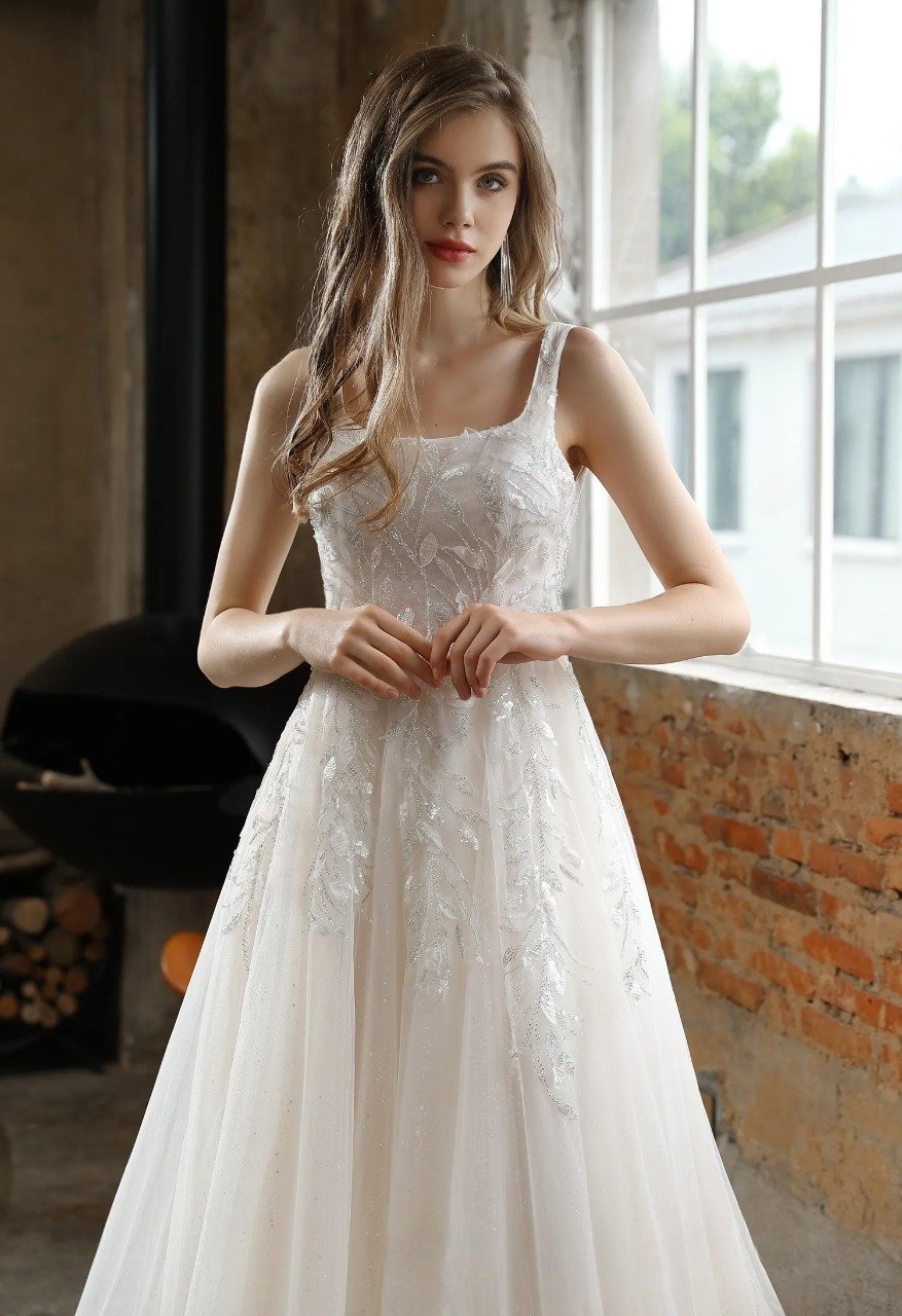 | Featuring | Square Neckline, Beaded Leafy Lace, Low Back |